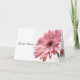 um cartão de chá de panela bonito com uma bela gerbera rosa sobre fundo branco com haste verde.