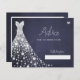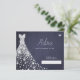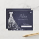 Diamantes brancos e brilhantes vestido de noiva em um fazer azul escuro de fundo de quadro marinho azul, um simples cartão elegante de chá de panela.