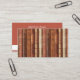 Use como marca de livro ou cartão de chamada. Personalize a parte traseira do cartão com suas informações de contato pessoais ou deixe o vazio.Este design apresenta uma coleção de espinhos de livros antigos e antiquários em tons de browns, pêssego, rosa, marfim e bege. Agradeça a todos que amam livros, incluindo: leitores, escritores, bibliófilos, bibliomaníacos, colecionadores de livros, vendedores de livros, bibliotecários, worms, e aqueles que se alegrem com a palavra escrita.