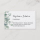 Apresente-se com estilo e graça quando trocar esses cartões de visitas sofisticados. As informações de nome e contato são definidas em caracteres clássicos decorados com design de folhas de eucalipto naturais. Faça uma impressão ensolarada com estes cartões de chamada elegantes.