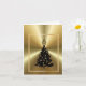 Este é um cartão elegante que apresenta a silhueta preta de uma árvore de Natal com um brilho dourado ao fundo. No topo da árvore está um contorno dourado e preto de um Hamsa. Todo o texto neste cartão pode ser alterado, editado ou removido para atender ao seu propósito e destinatário(s). Projetado por Sheila Cicchi, Brownielocks.com. Todos os Direitos Reservados.