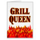 Churrasco engraçado da Rainha Grill dizendo em uma fonte flamejante ocidental para cozinheiros e cozinheiros. Com arte gráfica de chamas vermelhas e laranja no fundo do design. Outro original da MomsRetro.
