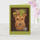 Welsh terrier com um monte de erva escavada e outros elementos da natureza no cartão para você personalizar sem custo extra