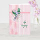Consiga um bom cartão para alguém que fez uma cirurgia no quadril. O cartão é um bonito coral rosa com flores e listras.