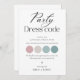 Cartão de código de vestimenta para convidados minimalista, informações da comitiva da noiva, familiares do noivo e da noiva, traje de casamento, paleta de cores para convidados, página de detalhes editável
