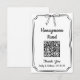 Torne fácil para os convidados contribuir para o seu fundo de lua de mel com este cartão de código QR chic e minimalista! Apresentando um design preto-e-branco na moda com uma delicada ilustração do arco e uma fonte elegante de script, este sinal é perfeito para recepções de casamento, chás de panela e festas de noivado. Basta carregar seu url e zazzle gerará um código de QR personalizado para contribuições digitais ininterruptas. Coloque as placas nas bolsas de boas-vindas ou coloque-as na mesa de placas e presentes. Um toque moderno para a doação de caixa!