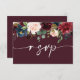 Cartão de Código QR de Boho Burgundy Blush Wedding RSVP RSVP. Este Cartão é caracterizado por rosas e flores boho burgundy e blush com duas fontes modernas de alta classe que moldam as tendências dos eventos festivos atuais e futuros.