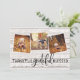 O cartão com fotos de Ação de Graças da revista rustic apresenta três fotos quadradas em um layout de colagem em um fundo de planalto de madeira leve, com "agradecido, grato, abençoado" ao longo do fundo, em letras pretas. Personalize com seus nomes, o ano e um cartões de natal (mostrado com "Feliz Ação de Graças"), e adicione uma foto adicional e uma mensagem pessoal às costas, se desejar.