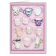 Um lápis colorido ilustra uma coleção de canecas e copos cerâmicos pintados bonito, colocados sobre fundo cor-de-rosa. Um presente adorável para aqueles que amam suas xícaras de chá ou café.