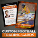Este moderno modelo de cartas de comércio de futebol laranja e preto é perfeito para mostrar o seu jogador favorito! Personalize-o com suas próprias fotos, estatísticas e informações. Este é um presente de excelente para qualquer fã de futebol e é certo que será um sucesso no seu próximo jogo ou festa!