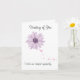 Flor com cartão de compaixão de pétalas à direita com texto editável na frente e dentro. O poema, de Anne Bronte, diz: Adeus a vocês! mas não adeus A todos os meus mais caros pensamentos de vocês: Dentro do meu coração eles ainda irão se albergar; E eles vão me animar e me confortar. Pode, evidentemente, ser esclarecido se não for necessário, ou pode acrescentar o seu. O Nome da família também é editável.