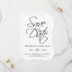 Anuncie o seu casamento com elegância atemporal usando este delicado cartão de compromisso de caligrafia preta. Com script clássico e estilo minimalista, é perfeito para casamentos formais, de gala ou modernos. Totalmente personalizável com seus nomes e data.