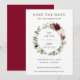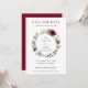 Este cartão de compromisso de casamento apresenta uma linda grinalda floral em aquarela nas cores marfim e borgonha. Projetado para combinar com nossa coleção de casamento Rustic Burgundy. Personalize-o com seus detalhes de forma fácil e rápida, basta pressionar o botão personalizar para reorganizar e formatar o estilo e a colocação do texto. (c) The Happy Cat Studio