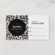 Coordena-se com as Cartões de visitas de Impressão Na moda e Chic até 1201AM. Um belo fundo da impressão leopardo torna-se moderno e chique quando combinado com um círculo negro para guardar o seu nome ou nome comercial para um logotipo instantâneo. Estes cartões de na moda são perfeitos para salões, cabeleireiros, maquiadores, unhas, bares de beleza e muito mais. © 1201AM CREATIVE