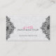 Elegante ornamento de ornamentado de vintage preto sobre damascos brancos. Disponível em outros produtos. Modelo de cartão de negócios de compromisso totalmente personalizável