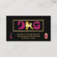 Um cartão de visita na moda, único e moderno, com fonte de cão fofa fofa fofa fofa fofinha, tesoura e gráficos de impressão de pata. Layout simples e minimalista para um negócio ocupado de limpeza de cães. Personalize com seu próprio nome e detalhes comerciais usando o modelo de texto. Outros artigos de papelaria e acessórios disponíveis nesta design para concluir um recurso comercial de correspondência com na moda.