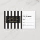 Coordena-se com o Modelo de cartão de negócios Salão III da faixa branca e preta até 1201AM. Seu nome ou nome comercial é exibido elegantemente sobre um fundo listrado preto e branco para uma estética muito chique e na moda nestes cartões de compromisso personalizados de salão. © 1201AM CREATIVE