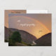 Cartão postal com uma cena de montanha com um rio que flui de volta para o oceano, com um arco-íris. Um belo cartão postal para expressar simpatia e condolências.