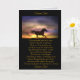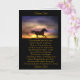 Como dizemos adeus, por favor não sintam tristeza, por tempo nesta terra, só emprestamos. Sorte minha, meu coração tinha uma casa, e com você do meu lado, não me senti sozinha. Você encheu minha vida de felicidade e luz, minha alma permanecerá eternamente brilhante. O amor não pode terminar, não pode desaparecer, eu sempre estarei com você, sempre estarei perto. E agora que minha jornada chegou ao fim, por favor, conheça e se console com esse meu amigo. Para mim, por favor, por minha vida, por favor, não lute por enquanto eu continuo "Forever Free" Esta bela carta parece excelente enquadrada. Um poema espiritual e bonito para o dono do cavalo que experimentou a perda do seu amigo especial. Entregue o cartão que é uma homenagem à sua ligação especial.
