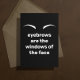 Às vezes, rir é o melhor remédio e este cartão de compaixão é seguramente uma risada daquela pessoa que ama trocadilhos e piadas pais. Este cartão de saudação é simples em preto e branco com um par de sobrancelhas brancas sobre o texto que diz, "sobrancelhas são as janelas da face... você olha em pano" com dentro de texto editável para uma mensagem personalizada de simpatia.