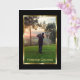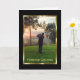 Uma fotografia reconfortante de um homem jogando golfe enquanto olha para uma bela cena pastoral. Os raios solares estão a rebentar pelas árvores da via navegável. Forever Golfing está escrito abaixo. Toda a cena do golfe está rodeada de uma simples e moderna estrutura dourada, que por sua vez está rodeada de preto. A mensagem de dentro da condolência diz que ele sempre teve um sorriso no rosto e um clube de golfe na mão, Sincera Simpatia. Todo o texto pode ser personalizado.