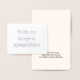 Este design de cartão de saudação, simples e simples folha de prata, apresenta a mensagem "Com as minhas mais profundas simpatias" na frente, juntamente com uma mensagem personalizada no dentro. Um cartão como este poderia talvez ser utilizado para oferecer simpatia aos familiares de alguém que tenha passado recentemente.