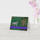 Cartão de condolências por perda de um cavalo de estimação. O design é um cavalo branco sobre um fundo de folha verde com uma árvore florescente laranja perto do cavalo. As palavras na dentro podem ser alteradas. Obrigados para Pixabay e Creative Fabrica para alguns dos elementos do design.