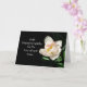 Um Cartão de condolências para a perda de uma sobrinha, com uma tulipa cor-de-rosa pálida e letras brancas sobre fundo preto. O dentro é o vazio deixado para a sua própria mensagem.