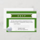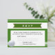 Convite de confirmação de presença de casamento com um tema de golfe em verde e branco simples com uma bola de golfe. Este cartão de confirmação de presença tem um convite de casamento correspondente: