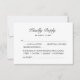 Apresentamos nosso moderno e elegante cartão de RSVP de casamento! Cause uma ótima impressão com este acessório de convite elegante e contemporâneo que complementa perfeitamente o tema do seu casamento. Criado com atenção aos detalhes, este cartão deixará uma impressão duradoura nos seus convidados. Este cartão apresenta caligrafia delicada e sofisticada, convidando seus entes queridos a responder gentilmente ao seu convite de casamento. A bela escrita adiciona um toque de graça e define o tom do seu grande dia. Dê aos seus convidados uma prévia deliciosa das delícias culinárias que os aguardam no seu casamento com nossas opções de menu personalizáveis. Seja um jantar suntuoso de várias opções ou um buffet divertido, seus amigos e familiares podem indicar suas preferências e necessidades alimentares sem esforço. Então, por que esperar? Faça uma declaração de estilo com nosso cartão de RSVP elegante e impressione seus convidados com seu charme contemporâneo. Peça o seu hoje e prepare-se para receber respostas rápidas de seus entes queridos, garantindo um processo de planejamento tranquilo para o seu grande dia.