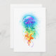 Água-viva grande, iridescente, desenhada artisticamente, brilhante, com longos tentáculos em branco, pintada sobre fundo de aquarela multicolorido. Água-viva arco-íris.