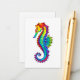 Articulação artificial, brilhante, arco-íris, cavalo de mar poligonal sobre fundo branco. Tatuagem brilhante.