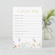 Celebre a chegada mágica de um pequeno novo com o nosso cartão de chá de fraldas "Desejos por Bebê". Projetadas com elegância e charme, essas placas apresentam uma fonte luxuosa de script faux ouro que adiciona um toque de sofisticação ao seu evento. A delicada e colorida borda de flor silvestre, design, enrola lindamente o cartão, criando uma atmosfera caprichosa e encantadora que os convidados adorarão. Adicionando ao charme estão borboletas bonitinhas que flutucam graciosamente pela fronteira, simbolizando a alegria e a antecipação de acolher uma nova vida.