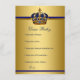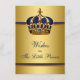 Cartão de desejos do príncipe para o bebê com uma bela coroa azul real e dourada em um fundo rico e elegante azul real e dourado. Você pode personalizar este cartão de desejos do príncipe para o bebê para o seu evento simplesmente adicionando seus detalhes no estilo de fonte e cor de sua escolha. Você pode adicionar os desejos de sua escolha. Peça aos seus convidados que os preencham e os guardem como lembrança do bebê.