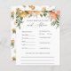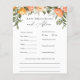 Cartão de conselhos e previsões para chá de bebê com laranjas e folhagens em aquarela. Uma maneira divertida de interagir com os convidados durante o seu chá de bebê. Combina com a Coleção Vintage Clementina e Folhagens na Loja Zazzle da Adore Paper Co.