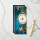 Turquesa, texturizada, fundo steampunk com latão e engrenagens douradas, chave prateada e relógio. Estilo Steampunk.