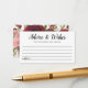 Cartões de conselhos de casamento rústicos elegantes com um fundo branco simples que pode ser alterado para qualquer cor, linhas para escrever suas palavras de sabedoria e uma variedade de flores aquareladas em marsala vermelho, burgundy e rosa beije no verso.