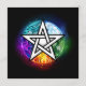 Pentagrama luminoso desenhado artificialmente com cinco elementos mágicos, água, terra, fogo, astral, ar sobre fundo negro. Pentagrama Wiccan. Wicca