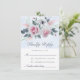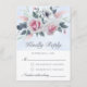 Cartão RSVP de casamento clássico e elegante com rosas de cor d'água rosa e branca e fundo azul claro.