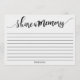 Esses cartões de memória são perfeitos para dar aos convidados para preencher para aquela pessoa especial. O design apresenta texto de fonte preto em um fundo branco que é simples, mas muito elegante. Estes cartões são excelentes para chás de panela, casamentos, festas de aniversário, graduações, festas de aposentadoria, e qualquer outra ocasião especial.