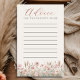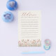 Concebido para se sentir como um suave prado de primavera em plena floração, este elegante cartão de conselhos convida os convidados a compartilhar desejos sinceros e pequenas pérolas de sabedoria. A escrita fluida e as flores coradas aéreas criam um toque caloroso e sentimental — um lindo souvenir que os futuros pais irão guardar por muito tempo após a celebração.