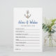 Cartão de Chá de panela de Âncora Náutica e de Desejo. Personalize a parte traseira da placa com o nome da noiva e a data do chá.