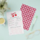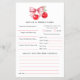 Torne o seu chá de fraldas mais divertido e memorável com este cartão de conselhos e previsões. Convidados podem compartilhar conselhos sinceros, adivinhar as características do bebê e fazer predições divertidas sobre o nascimento. Uma lembrança que os pais gostarão, esta carta de jogo duplica como uma lembrança atenciosa cheia de amor e riso. Perfeito para chás de fraldas de cereja, temas de bagas, ou qualquer celebração doce!