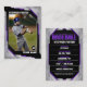 Mostre seu amor pelo jogo com este na moda e um cartão de troca personalizável de baseball. Apresentando um design ousado e moderno com um elegante esquema de cores preto e roxo, este cartão é perfeito para honrar o seu jogador favorito. Adicione facilmente sua própria foto, nome do jogador, nome do grupo e estatísticas para um toque personalizado.