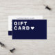 An elegant navy blue gift card designed for professional gifting and promotions. Featuring a clean structured fields for recipient, sender, amount, and expiry, plus your business contact details. This versatile template works for corporate rewards, client thank-yous, employee incentives, and in-store sales—customizable, polished, and consistently professional.