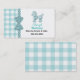 Placa de rede de mamães em branco, no lado direito, e um aqua com padrão branco marcado, no lado esquerdo e no verso. Os gráficos de uma fita aqua e de uma fita de bolinhas preta rodando na vertical entre os dois fundos são decorados com um arco de bolinhas correspondente. Um adorável poodle azul aqua decora parte superior direita do cartão, com texto preto personalizado sob ele. Personalize este cartão divertido como uma forma excelente de manter contato com outras mães para organizar festas, jogar datas e sentar-se em bebês.