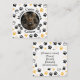 The front showcases a prominent circular frame for your Maine Coon's portrait, surrounded by your cattery name in a classic, elegant font. The background is adorned with a chic pattern of black and gold paw prints and hearts. The reverse side provides a clean, organized space for all your vital information, including your name, phone, email, website, and social media handles.
