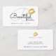 A simplicidade de um cartão de contato branco elegante, delicado e feminino com lábios de ouro falsos, e com campos para nome e inicial (script Sacramento font-style), profissão, nome comercial e informações adicionais (endereço, telefone e email)... ideais para salões de beleza, maquiagem, suprimentos de cosmetologia...