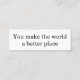 Mostre as pessoas que você vê suas contribuições com este cartão. Colocamos a mensagem genérica na frente para que você possa usar o verso para adicionar o que é que cada pessoa adiciona à vida. Excelente para família, amigos, parceiros de negócios, e até mesmo estranhos gentis!