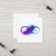 Símbolo infinito com uma bela pena pintada em cores roxas e azuis brilhantes sobre fundo branco.